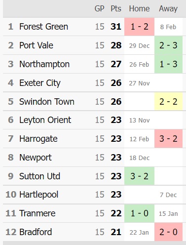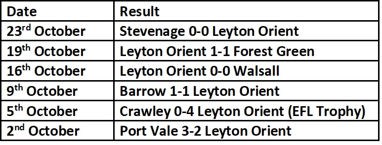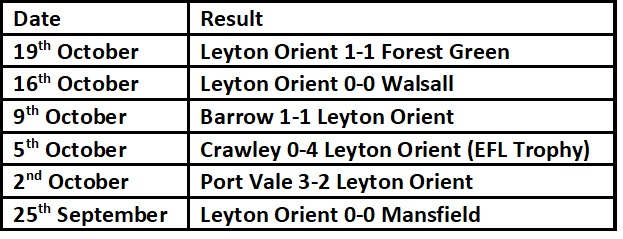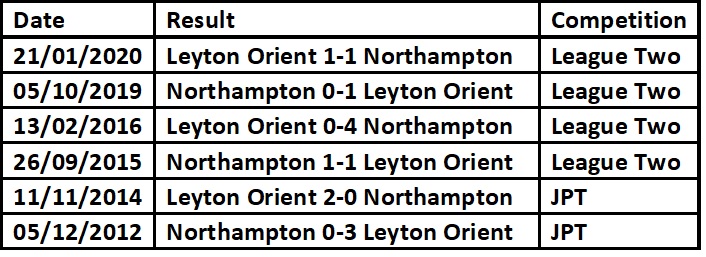 Head to Head – Northampton 30, Draw 22, Leyton Orient 29