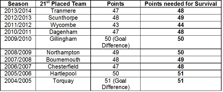 In one of the closest relegation battles in recent years, Saunders has named 50 points as the safety benchmark.”Everyone is playing everyone, 3 wins and a result, you shouldn’t get relegated on 50 points“ Statistics seem to back up the 50 points benchmark but with 10 games remaining only 14 points separates Crawley in 21st and Barnsley in 6th.