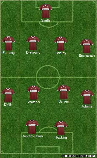 The Cobblers were forced into a half time change with David Buchanan forced off with an injury to be replaced by John Joe O’Toole. Joel Byrom moved to left back with O’Toole partnering Watson in central midfield.